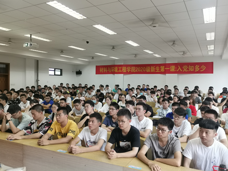习近平总书记曾对青年党员提出殷切期望,“在学思践悟中坚定理想信念,在奋发有为中践行初心使命。”为进一步加强思想引领,强化学生理想信念教育,材料与环境工程学院在2020级新生中开展始业教育系列课程,于9月16日上午组织新生始业教育第一课之“入党知多少”,由学院党委副书记孟庆宁主讲。