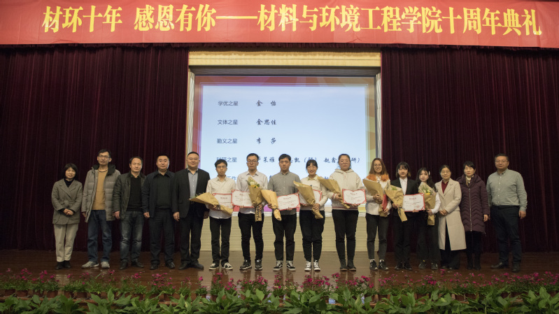 典礼上,材料与环境工程学院对各方面取得突出成绩的老师、学生进行祝贺,并进行了一年一度的材环之星表彰仪式,领导们为2020年度材环之星颁奖。材环师生饱含深情,以歌曲、相声、朗诵等形式向学院献礼。