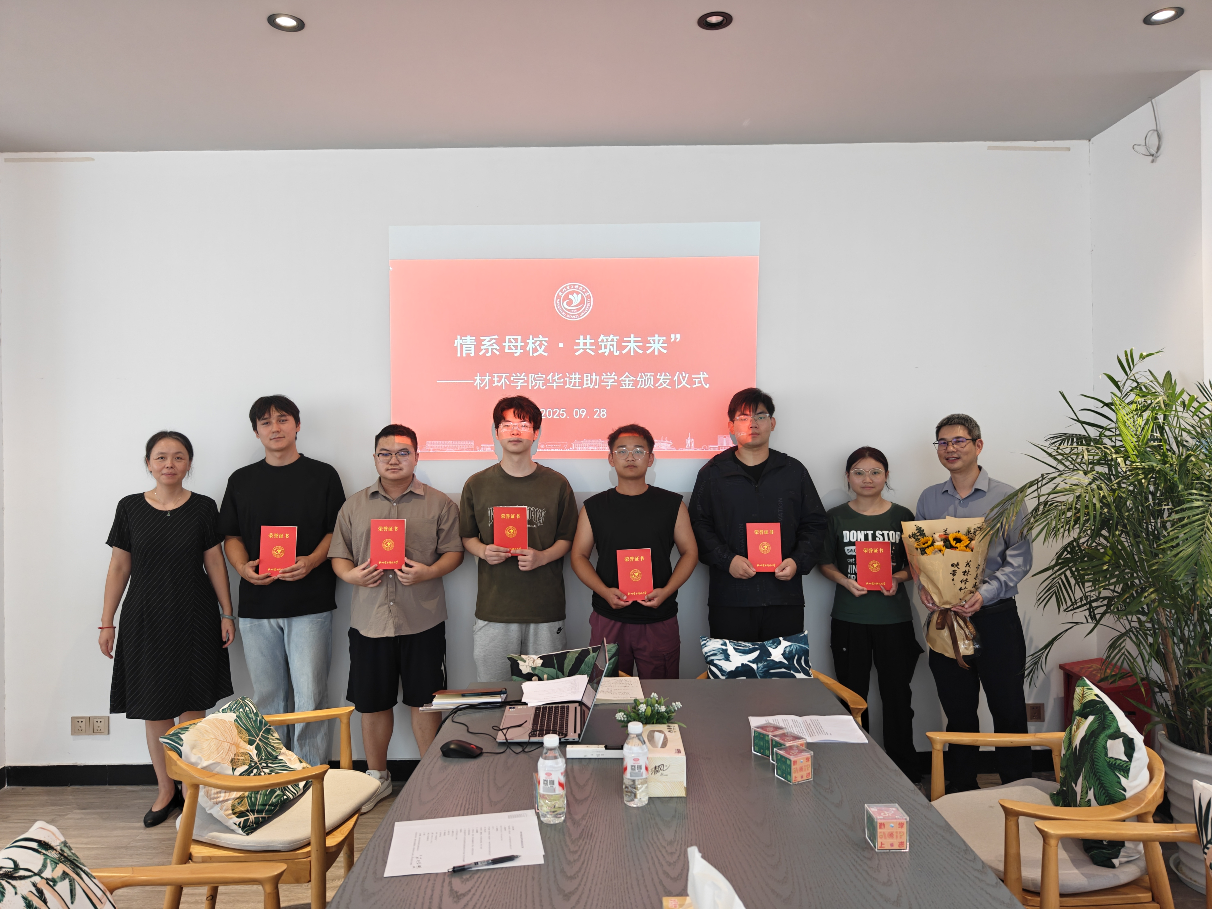 2025年9月29日下午,材料与环境工程学院在材环之家会议室举行华进校友助学金颁发活动。本次活动旨在传承校友爱心,为家庭经济困难且品学兼优的学生提供学业支持,激励学子们以更饱满的热情投入学习与科研,同时搭建校友与母校、在校学生间的交流桥梁。