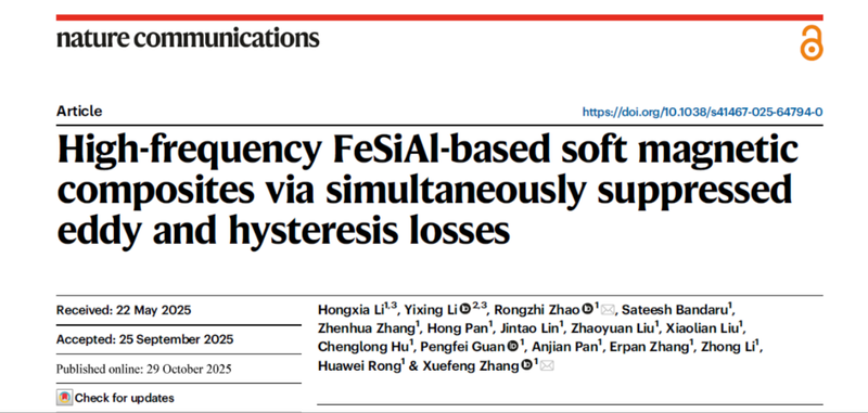 近日,Nature Communications在线刊登了我校材料与环境工程学院张雪峰教授团队的研究论文“High-frequency FeSiAl-based soft magnetic composites via simultaneously suppressed eddy and hysteresis losses”。该工作采用体相掺杂/界面绝缘包覆同步优化策略,通过金属原子互扩散制备FeSiAl:Sn/Al2O3软磁复合材料,有效降低了涡流和磁滞损耗,为工程应用领域高频软磁复合材料的开发奠定了基础。论文第一作者为杭州电子科技大学李红霞教授和东北大学李逸兴副教授,通讯作者为杭州电子科技大学张雪峰教授和赵荣志副教授。
